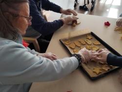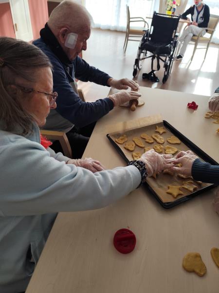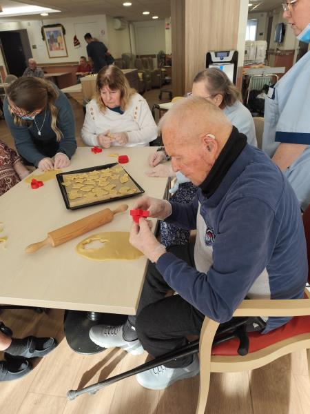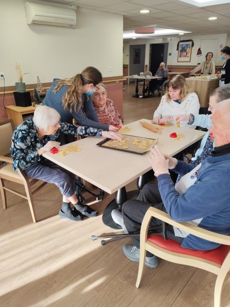 Ce matin, l'unité du 2ème étage fut embaumée par une bonne odeur de sablés réalisés par les résidents et Audrey, stagiaire en animation.