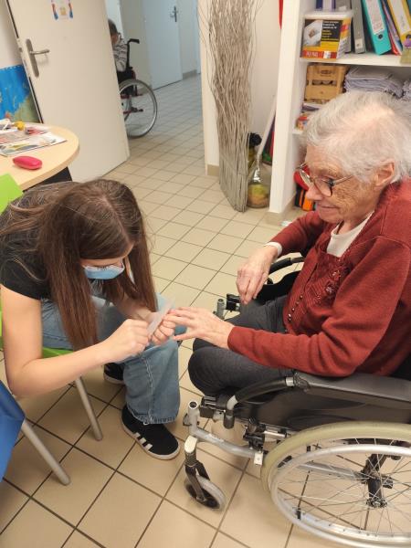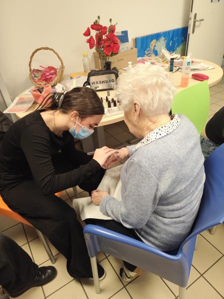 Venue proposer une beauté des mains aux résidentes. Les retrouvailles étaient très sympathiques, les résidentes ont beaucoup appréciés.