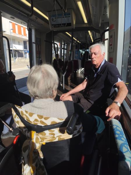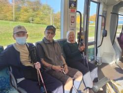 Résidence Granvelle > Actualités > Cette après-midi Cette après-midi Publiée le 18/10/2025 Cette après-midi, une belle marche pour digérer, départ en Tram jusqu'au CHU et remontée à pieds à la résidence, suivie de chants avec Laurence