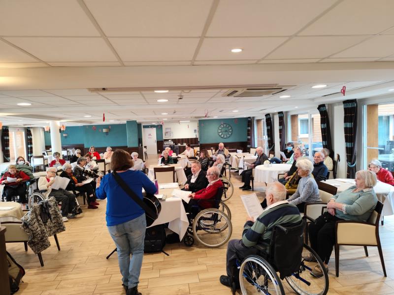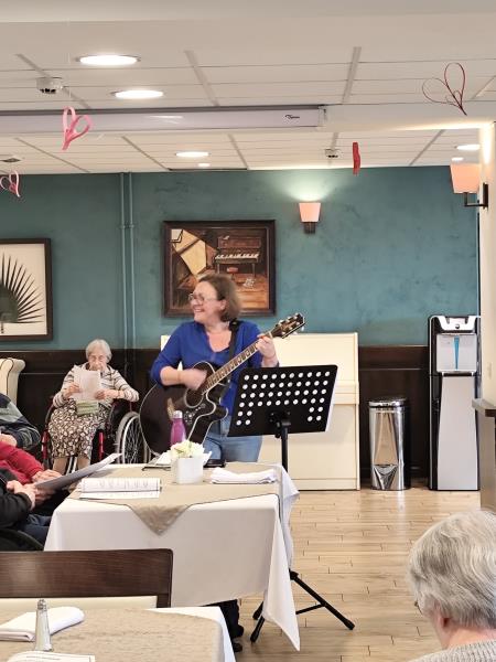 Cet après-midi quelle bonne humeur au restaurant avec des chants accompagnés de Laurence à la guitare.
