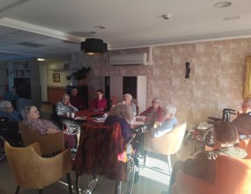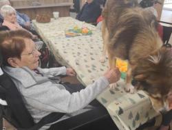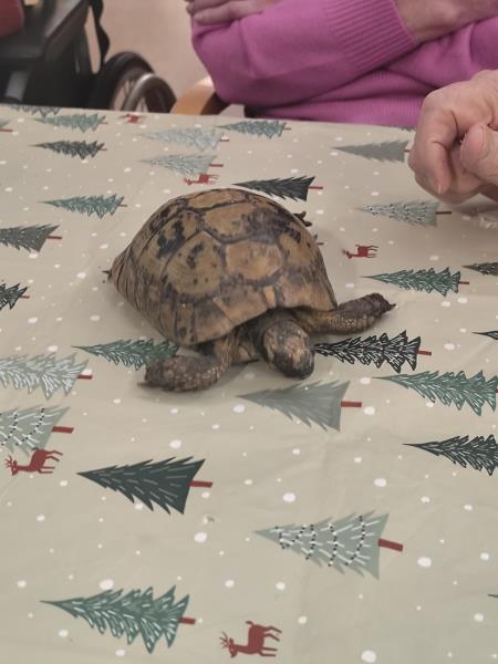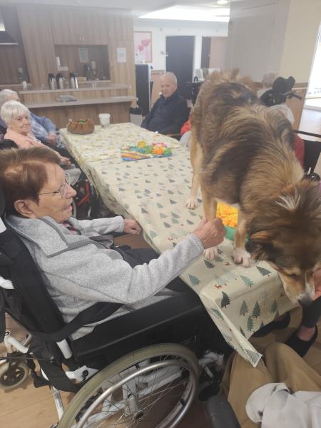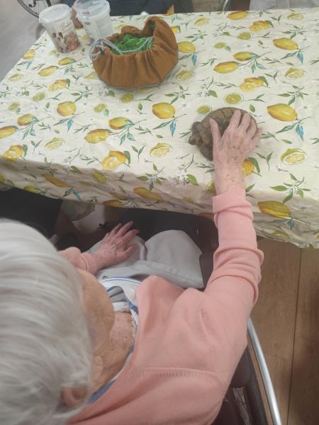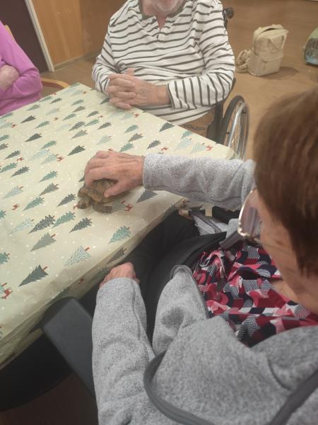 Ce matin, Sacha est venue avec sa chienne Jazz et Robert la tortue pour les résidents à l'unité du 1er étage.