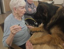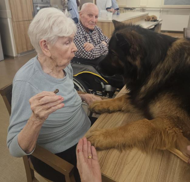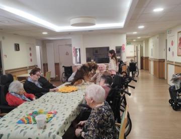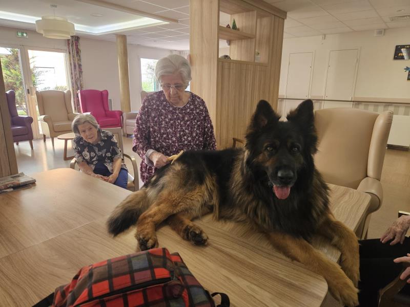 Résidence Granvelle > Actualités > Médiation animale avec Anaïs Médiation animale avec Anaïs Publiée le 27/03/2026 Séance de médiation animale à Réverotte avec Eïko et Anaïs. Au programme : séance de calins/croquettes et jeu "tel maître/tel chien".