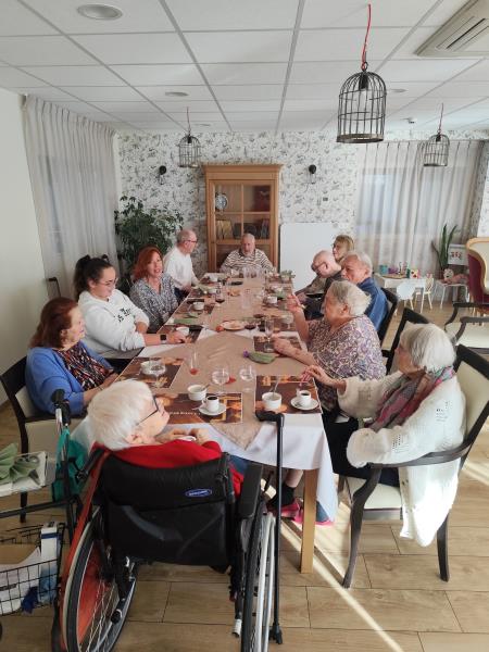 Nous avons invité 3 résidents de la résidence De Courcelles à Rochefort-Sur-Nenon ainsi que Esther l’animatrice et sa stagiaire Mélodie à venir partager ce repas avec nous.