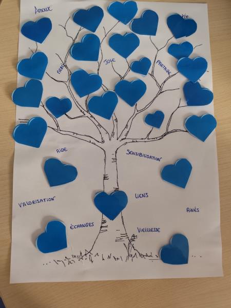 Pour clôturer le tout, un arbre de vie avec les cœurs qu'il fallait trouver tout au long de la semaine. Avec des mots représentant la semaine bleue. 💙